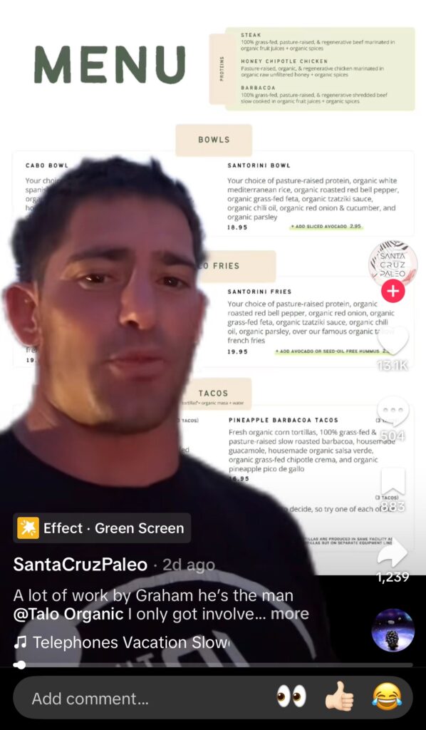According to Mokalis’ Facebook lecture, while a brand must “provide cohesive branding”, it shouldn’t use the same material but rather the same tone and message, (Module 6, Part 2). Santa Cruz Paleo often re-uses the same exact content across TikTok, X, and Instagram. By doing this, content becomes repetitive and may cause burn-out among some consumers, especially if they are following on multiple platforms. Here is an example of a post that was posted on TikTok, X, and Instagram.
